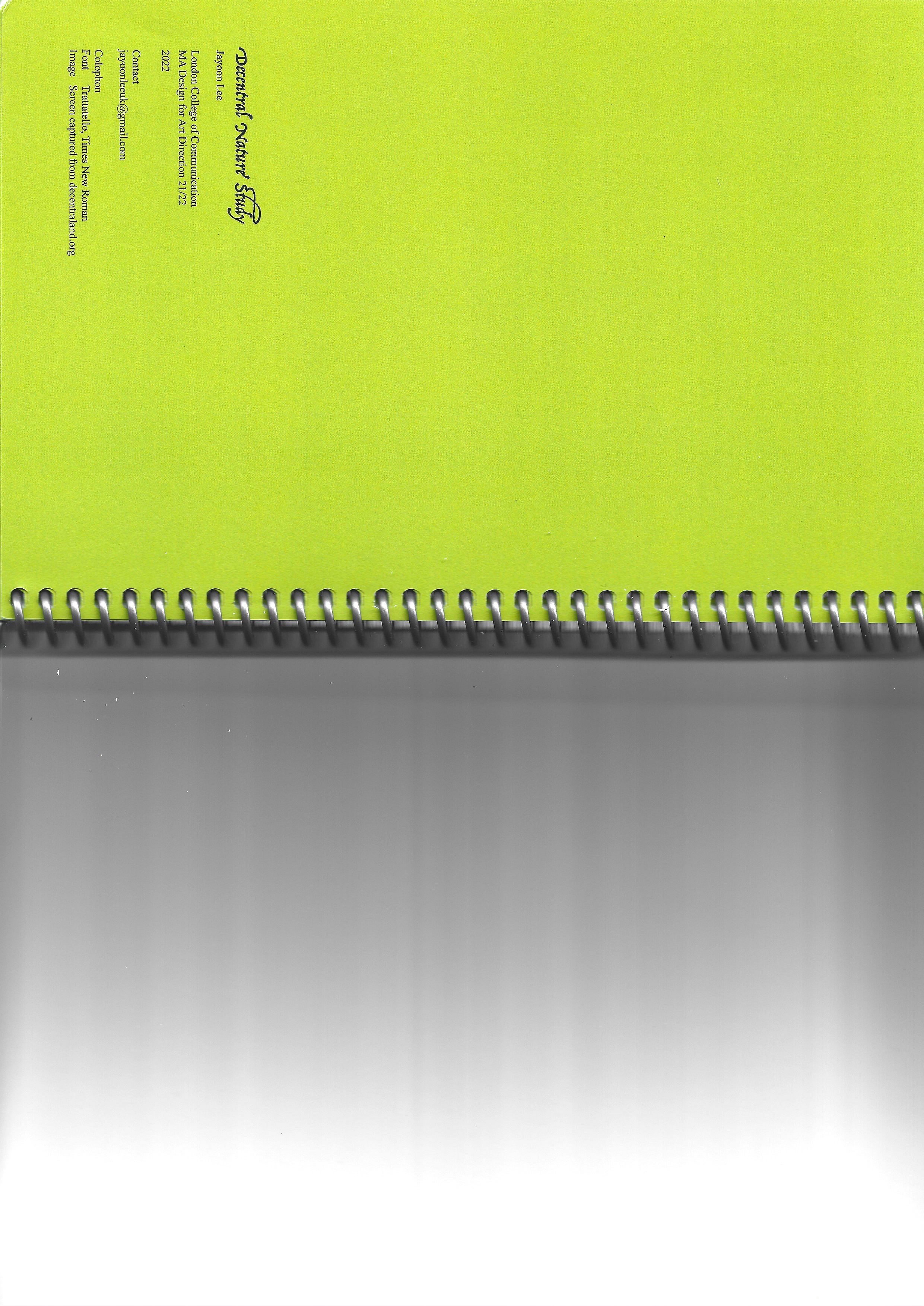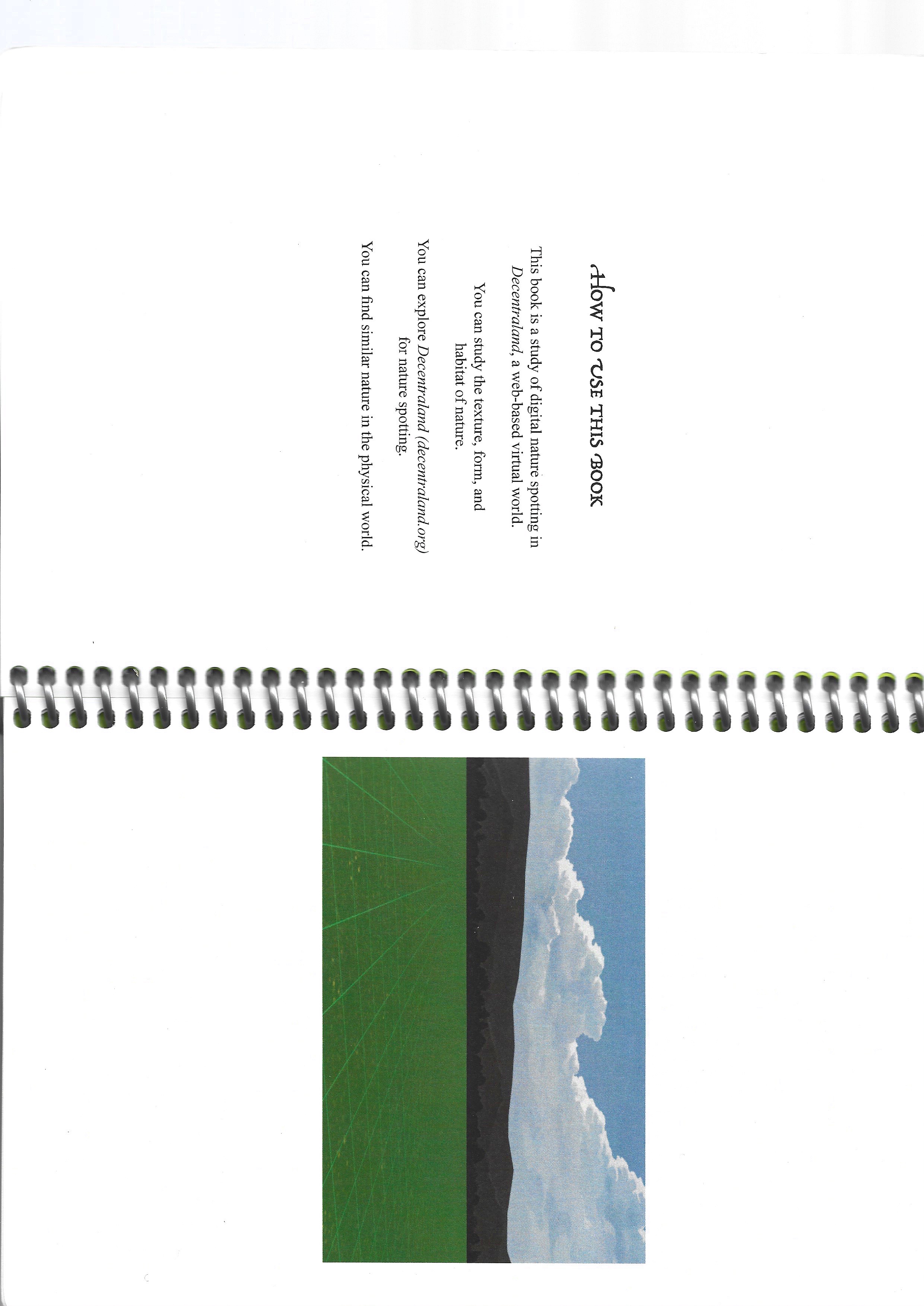 As a result of my research on resurfaced nature in the digital world, I have created a documentary book, Decentral Nature Study. Decentral Nature Study is a book that gives a glimpse of the restricted sense to experience nature while paying attention to the natural objects regarded as a backdrop of the virtual land. The plants are extracted from their virtual habitat through screenshots of the landscape. A series of simple yet laborious processes involved walking (the avatar performed walking on my behalf), taking a picture(screenshot), and analysing (outlined and colour swatch with Adobe Photoshop).